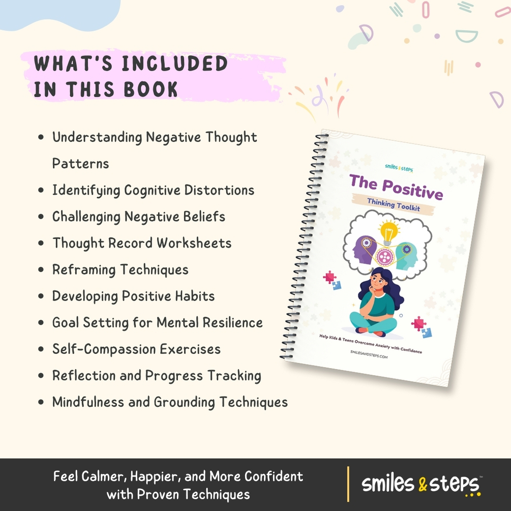 The Positive Thinking Toolkit is designed to help children and teens develop a positive mindset, reduce stress, and challenge negative thoughts. With engaging exercises and cognitive reframing techniques, this workbook builds emotional resilience in a fun and interactive way!